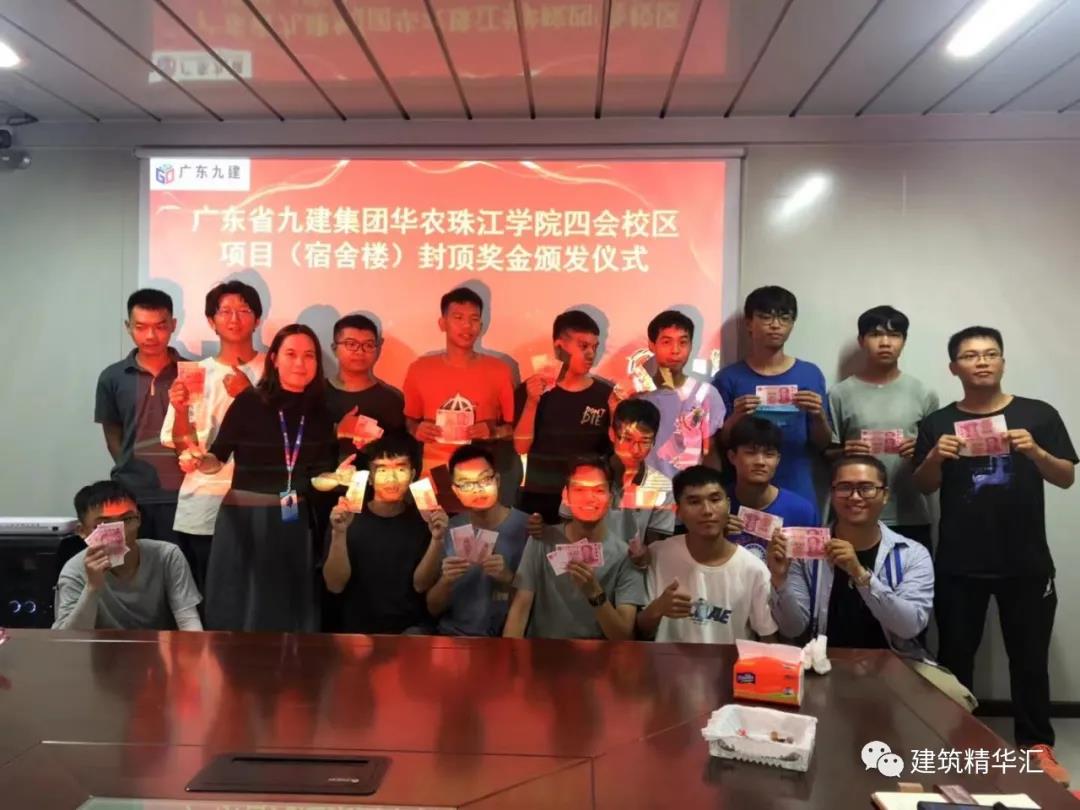 本次封頂同時也是九建項目激勵機制的開篇,懷著階段成功的喜悅,為感謝九建人的辛勤付出,對項目人員進行了獎金頒發(fā)儀式。