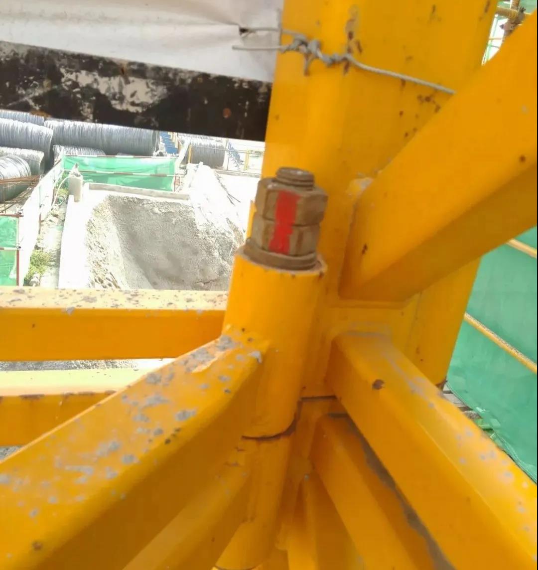 松開回轉(zhuǎn)制動,防止大風(fēng)天氣對塔吊產(chǎn)生的額外傾覆力矩。逐個(gè)檢查做有標(biāo)準(zhǔn)節(jié)、基礎(chǔ)、附墻螺栓,緊固到位,檢查主體結(jié)構(gòu)沒有出現(xiàn)開裂等隱患。